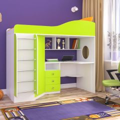 Двухъярусная кровать-чердак «Кадет-1» с рабочей зоной и универсальной лестницей - практичный и стильный предмет меблировки. Современная и стильная мебель для детской комнаты школьника, в которой предусмотрено не только наличие полноценной удобной кровати, но также просторный рабочий стол, над которым расположены полки для книг или декоративных мелочей, тумбочка с ящиками, полки и шкаф для одежды. Детская двухъярусная кровать помогает экономить и рационально использовать пространство комнаты, так как соединяет в себе несколько предметов мебели, при этом занимает место только для одной кровати.